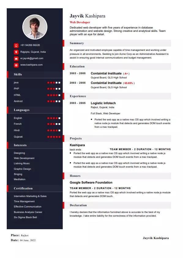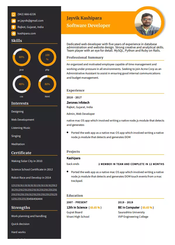 Job Resume TemplateWe provide latest HTML CSS template for website. Download bootstrap templates, html5 template for web application.