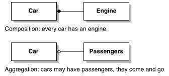 Whereas, Aggregation Use a hollow diamond to represent a simple aggregation relationship, in which the "whole" class plays a more important role than the "part" class, but the two classes are not dependent on each other.