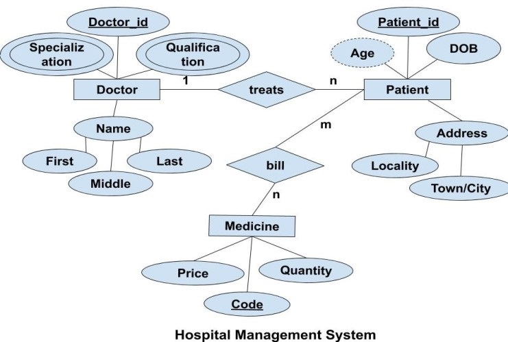 Derived attributes are depicted by dashed ellipse. It is based on another attribute.