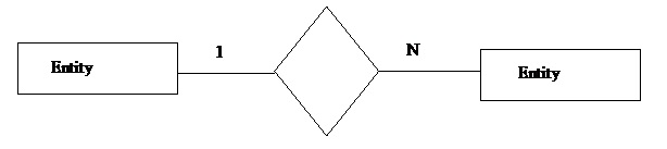 When more than one instance of an entity is associated with a relationship, it is marked as '1:N'. In one-to-many relationship each entity on the left and more than one instance of an entity on the right can be associated with the relationship.