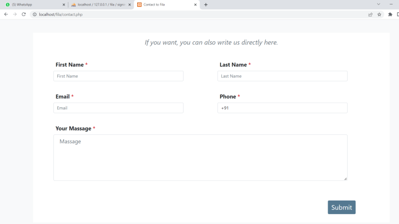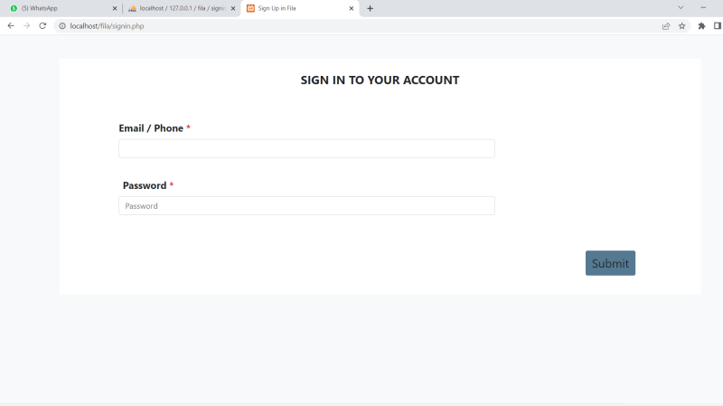 Step 5 : type localhost with project folder name for ex(https:/Localhost/Fila)