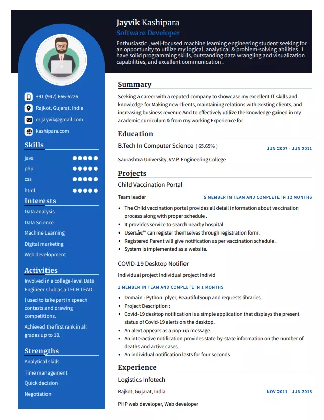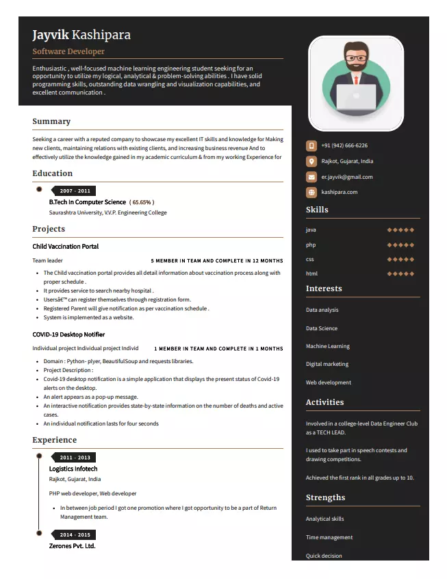 In our Online Resume Builder Pick a Attractive template, fill it out, and format. Create a professional resume in a few clicks.