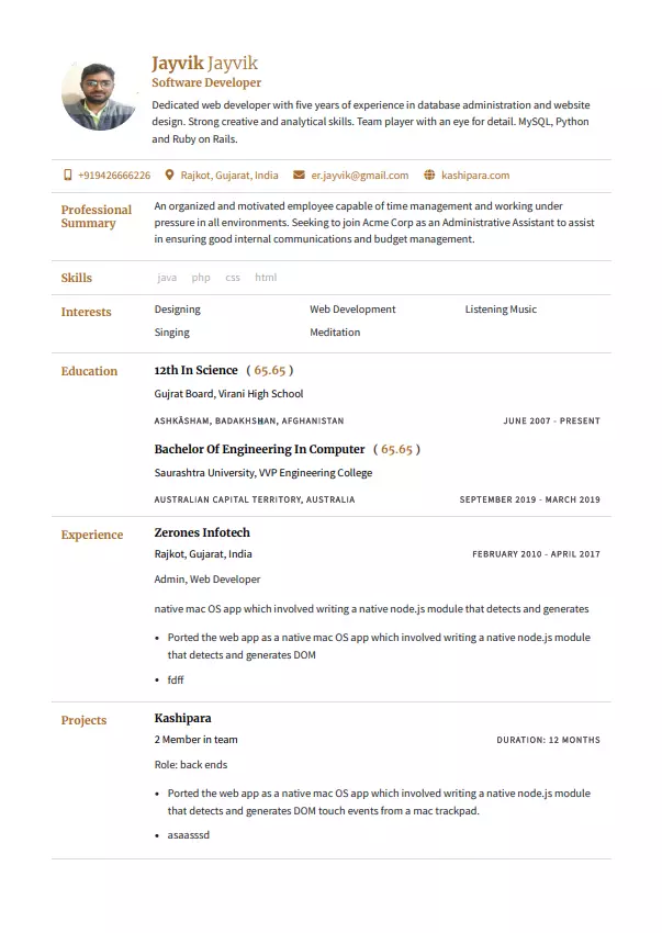 In our Online Resume Builder Pick a Attractive template, fill it out, and format. Create a professional resume in a few clicks.